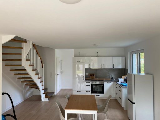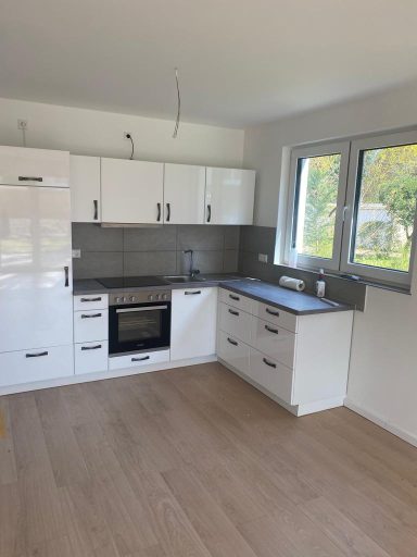 - Wohn- und Essbereich, Flur, Küche je nach Bemusterung Fliesen oder Laminat